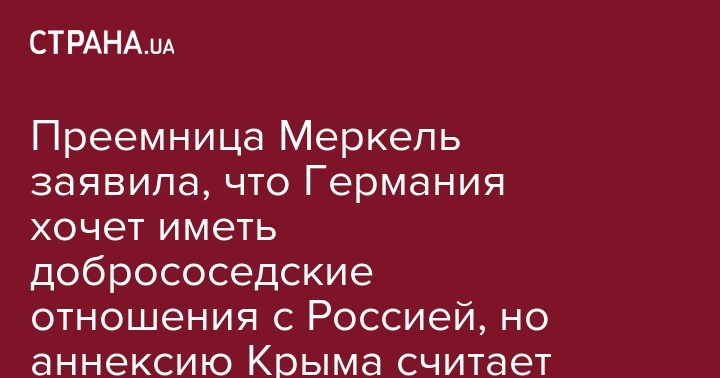 Крамп-Карренбауэр сказала, что Берлин стремится иметь добрососедские отношения с Москвой. Но в ситуации с возвращением полуострова в состав России, по ее мнению, есть признаки нарушения международного права.