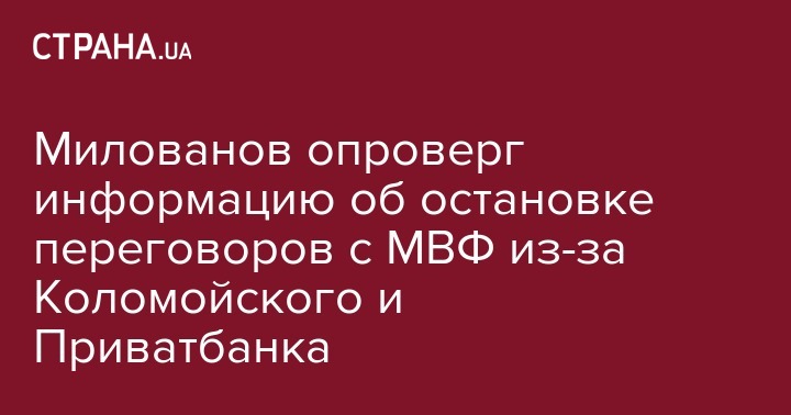 Министр развития экономики, торговли и сельского хозяйства Украины Тимофей Милованов заявил, что информация о срыве переговоров Нацбанка с Международным валютным фондом по поводу нового транша из-за судебных тяжб олигарха Игоря Коломойского за контроль над Приватбанком, - не является правдивой. Об этом чиновник написал на своей странице в Facebook.