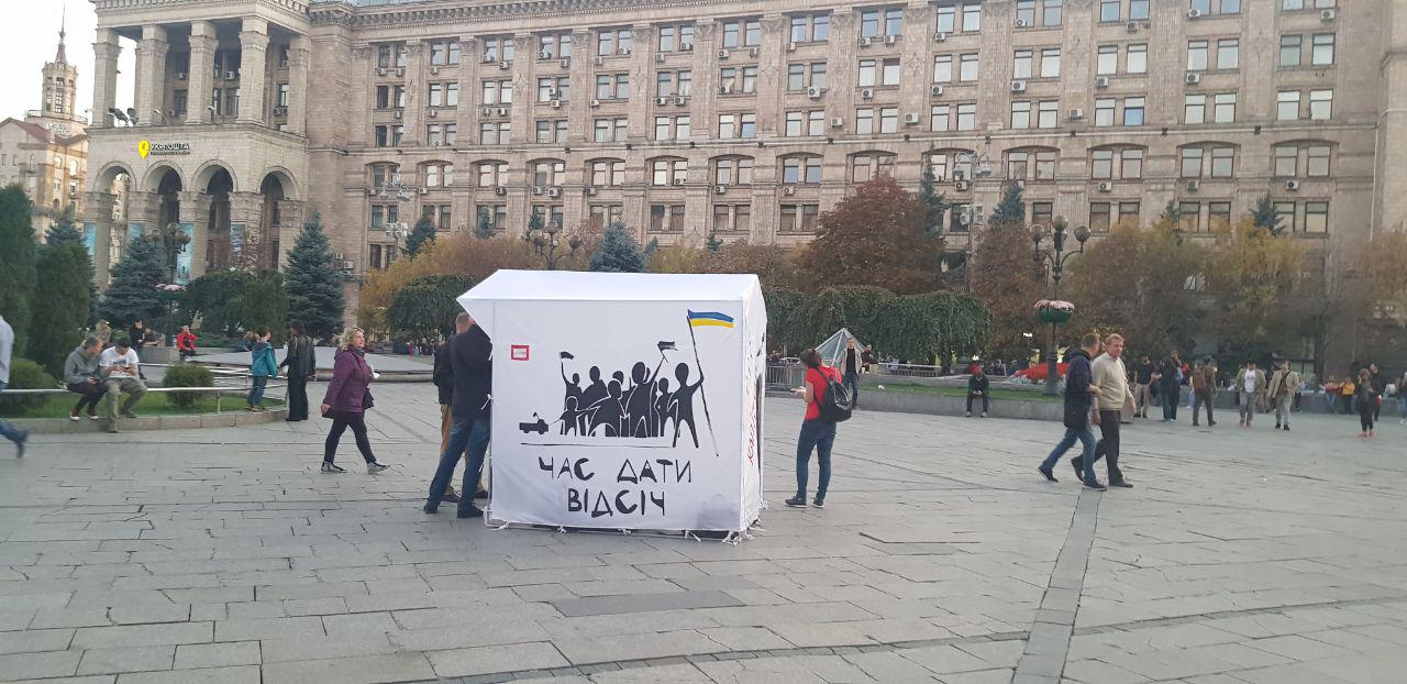 18:10 Возде отеля "Козацкий" на Майдане установили палатку.