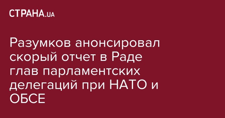 Председатели украинских делегаций в Парламентской ассамблее НАТО и Парламентской ассамблее ОБСЕ в скором времени отчитаются перед Верховной Радой о результатах своей работы. Об этом со ссылкой на спикера парламента Дмитрия Разумкова сообщает УНН.