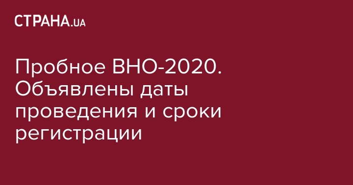 Регистрация на пробное ВНО-2020 стартует 3 января и завершится 24 января. Сдать пробное тестирование по украинскому языку и литературе абитуриенты смогут 21 марта, а пробное ВНО по математике, истории Украины, биологии, географии, физике, химии и иностранным языкам состоится 28 марта 2020 года.