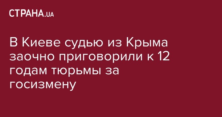 Коллегия судей Святошинского районного суда Киева приговорила (заочно) к 12 годам лишения свободы с конфискацией всего имущества судью Севастопольского апелляционного суда АР Крым по статье "государственная измена". Об этом сообщается на сайте Генеральной прокуратуры.