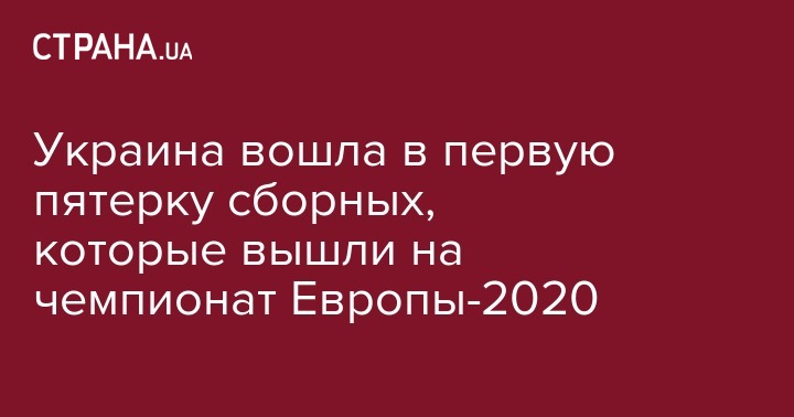 Украина вошла в первую пятерку сборных, которые вышли на чемпионат Европы-2020