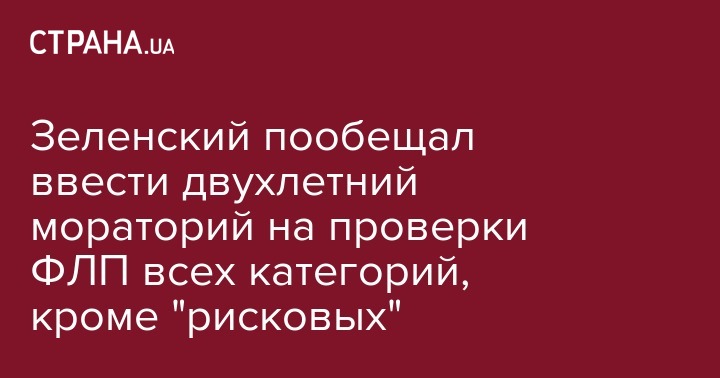 Зеленский пообещал ввести двухлетний мораторий на проверки ФЛП всех категорий, кроме "рисковых"