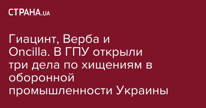 Гиацинт, Верба и Oncilla. В ГПУ открыли три дела по хищениям в оборонной промышленности Украины