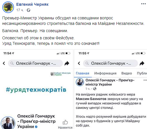 "Премьер-Министр Украины обсудил на совещании вопрос несанкционированного строительства балкона на Майдане Незалежности.