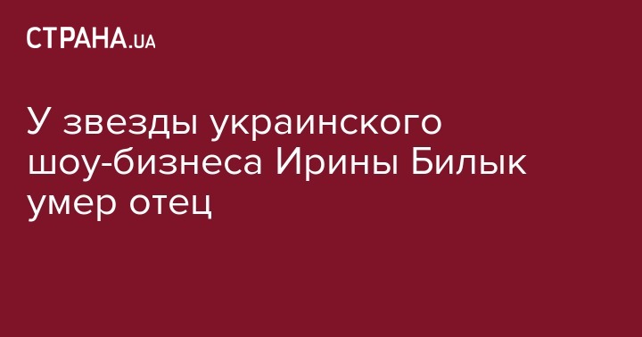 В семье популярной украинской певицы Ирины Билык случилось горе - во вторник, 15 октября, скончался ее отец. Об этом она сама сообщила на своей странице в Instagram и опубликовала видео со своими родителями. Вероятно смерть отца Ирины Билык наступила в его день рождения.