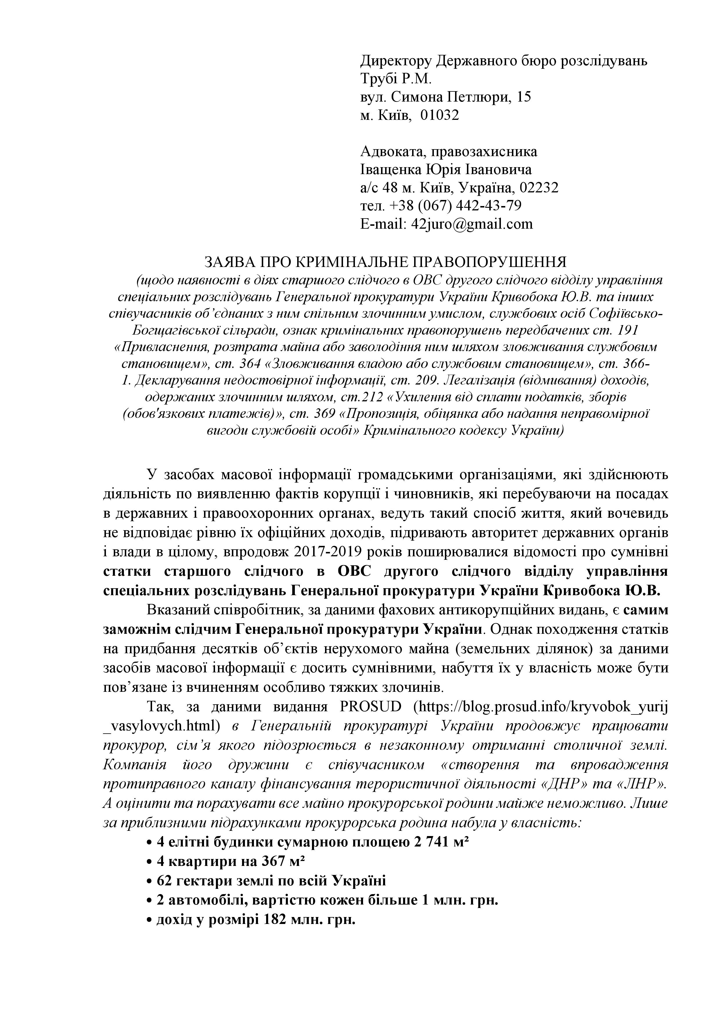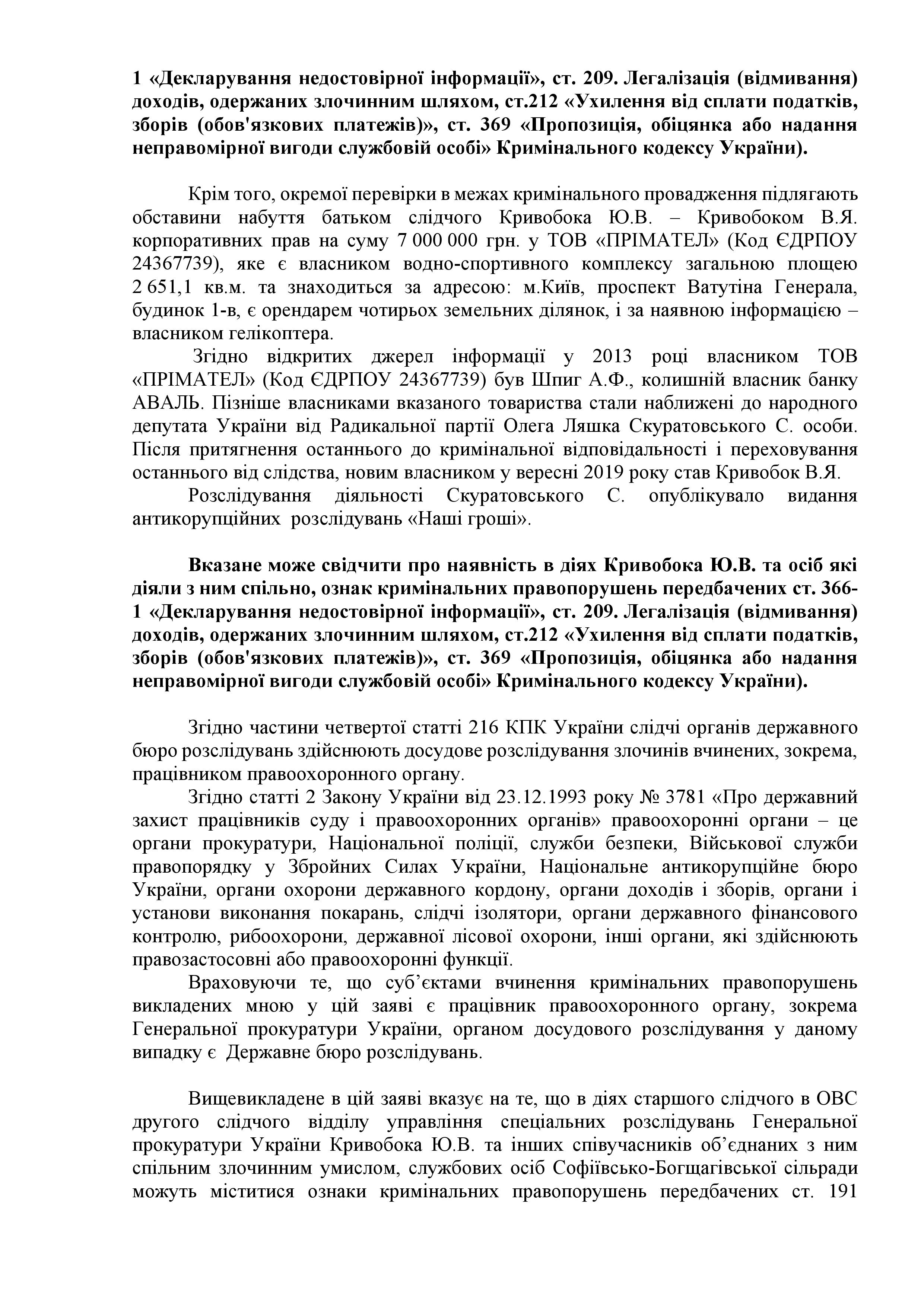 По его словам, сейчас готовятся еще несколько заявлений в отношении следователя Кривобока уже в части его служебной деятельности.