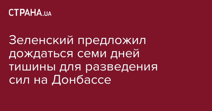 Зеленский предложил дождаться семи дней тишины для разведения сил на Донбассе