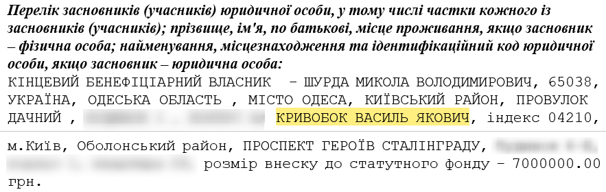 Интересно, что после объявления "пидозры" и бегства Скуратовского (он сейчас в розыске), новым владельцем фирмы "Примател" 20 сентября 2019 года - то есть уже при новом генпрокуроре Рябошапке - стал отец прокурора Кривобока. А директором осталась Елена Добровольская - которая была помощницей депутата Скуратовского.