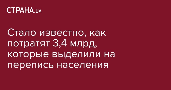В государственном бюджете предусмотрено 3,431 млрд грн для проведения переписи населения.  Об этом пишет "Украинская правда".