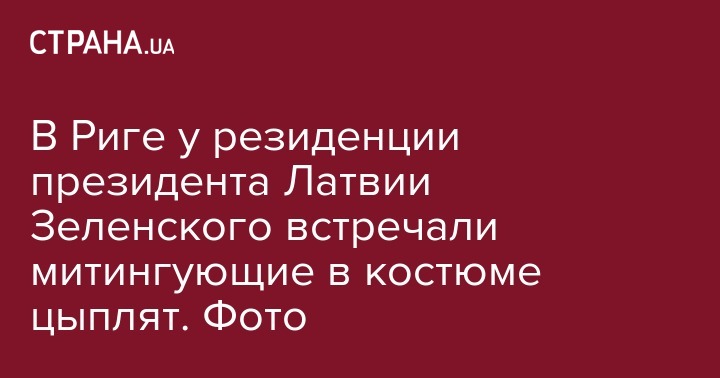 В Риге у резиденции президента Латвии Зеленского встречали митингующие в костюме цыплят. Фото