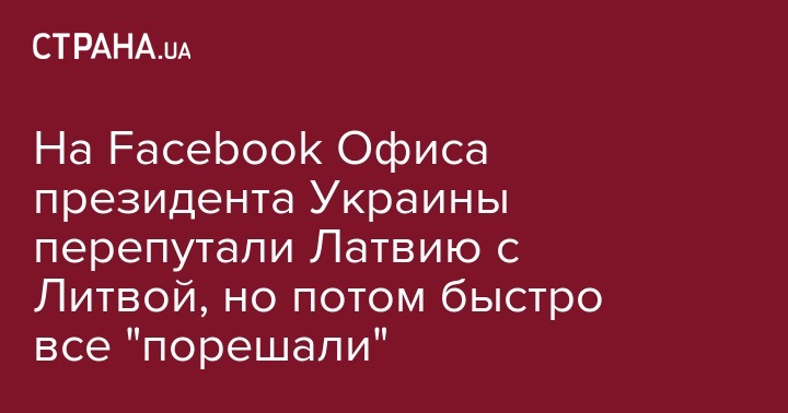 На Facebook Офиса президента Украины перепутали Латвию с Литвой, но потом быстро все "порешали"