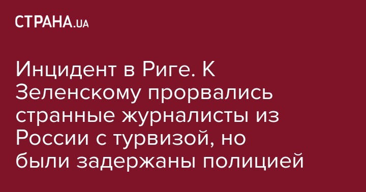 Во время официального визита президента Украины Владимира Зеленского в Латвию произошел неприятный инцидент. Во время торжеств в Риге полицейские задержали двух мужчин с телекамерой и микрофоном, у которых не было никакой аккредитации, и которые настойчиво пытались прорваться к украинскому президенту.