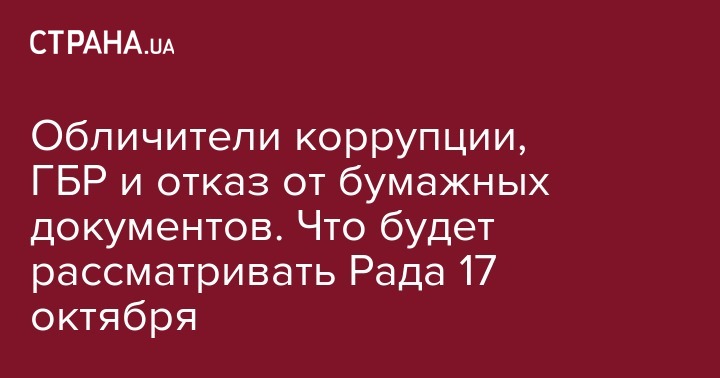 Верховная Рада намерена в четверг, 17 октября, рассмотреть во втором чтении законопроект об обличителях коррупции и повысить ставки на железорудное сырье с 8 до 10%. Данные об этом содержит повестка дня ВРУ на 17 октября.