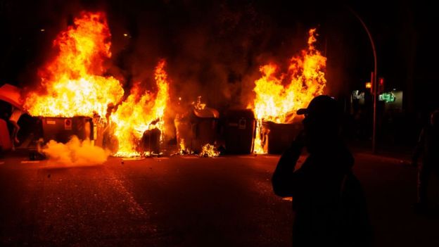 При этом днем 16 октября демонстранты заблокировали железнодорожные пути и другой транспорт. Беспорядки вечером в среду начались в Жироне, Ллейде, Таррагоне и других городах Каталонии.
