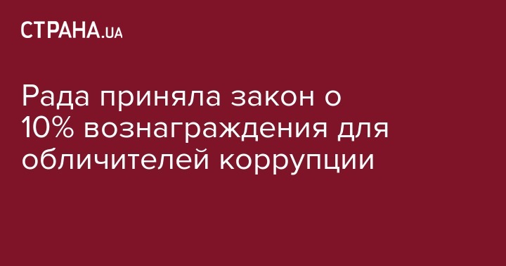 Рада приняла закон о 10% вознаграждения для обличителей коррупции