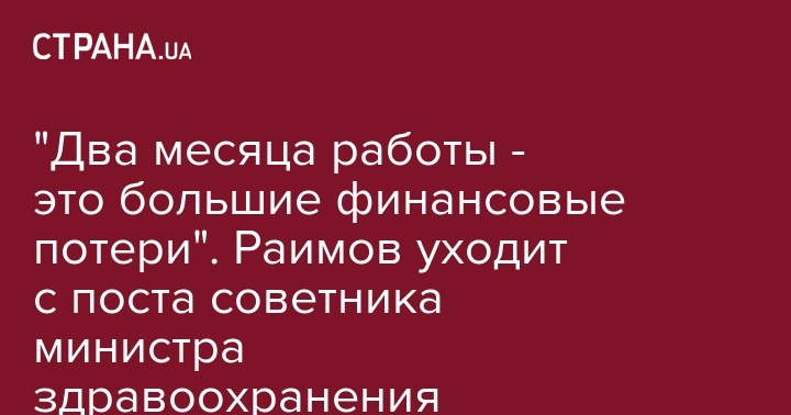 Дмитрий Раимов, который 2 августа 2019 года был назначен советником Министра здравоохранения Украины Зоряны Скалецкой, уходит с должности. Об этом он рассказал "Стране".