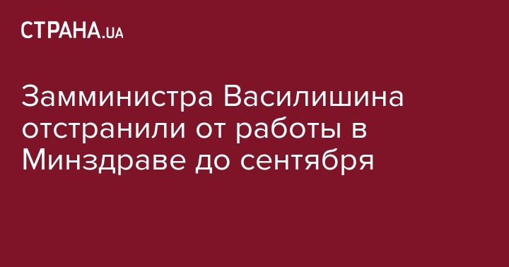 Стало известно об официальном отстранении от выполнения служебных обязанностей до 8 сентября 2016 года руководителя аппарата Минздрава Украины Романа Василишина. Также он являлся заместителем министра здравоохранения Украины. Решение о его отстранении в четверг, 14 июля принял Днепровский районный суд Киева по ходатайству столичной прокуратуры, передает Интерфакс со ссылкой на пресс-службу прокуратуры Киева.
