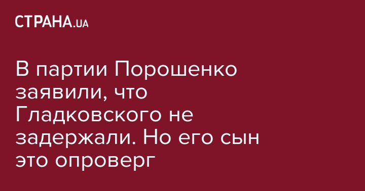 В партии Порошенко заявили, что Гладковского не задержали. Но его сын это опроверг