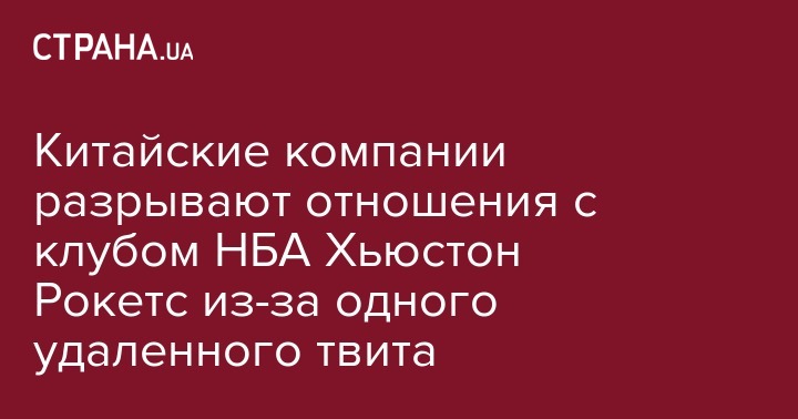 Сразу несколько китайских компаний и Ассоциация баскетбола Китая объявили о прекращении сотрудничества с клубом Национальной баскетбольной ассоциации "Хьюстон Рокетс". Об этом пишет Коммерсант.