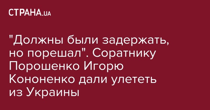 "Должны были задержать, но порешал". Соратнику Порошенко Игорю Кононенко дали улететь из Украины
