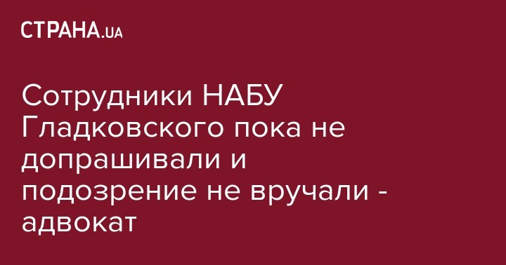 Сотрудники НАБУ Гладковского пока не допрашивали и подозрение не вручали - адвокат