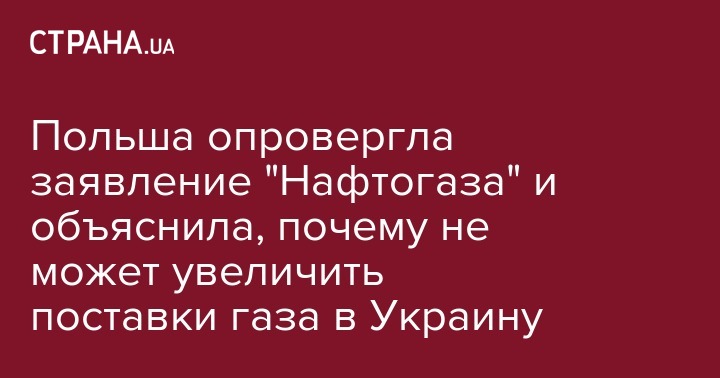 Польша опровергла заявление "Нафтогаза" и объяснила, почему не может увеличить поставки газа в Украину