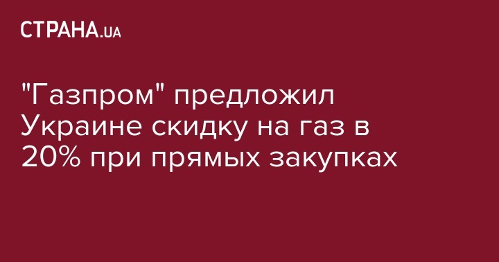 "Газпром" предложил Украине скидку на газ в 20% при прямых закупках