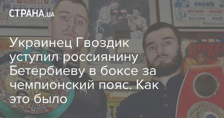 В субботу, 19 октября в США Александр Гвоздик уступил Артуру Бетербиеву в объединительной боксерской встрече. Поединок завершился трема нокдаунами, что означает технический нокаут. Бетербиев стал обладателем пояса чемпиона мира в полутяжелом весе по версии WBC и сохранил свой чемпионской пояс IBF.
