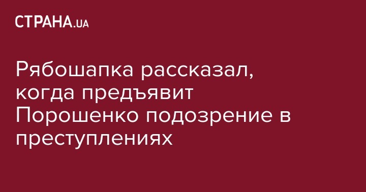 Генеральный прокурор Украины Руслан Рябошапка рассказал, что подозрение бывшему президенту Петру Порошенко будет предъявлено, когда для этого будет достаточно доказательств. Об этом передает "Интерфакс-Украина".