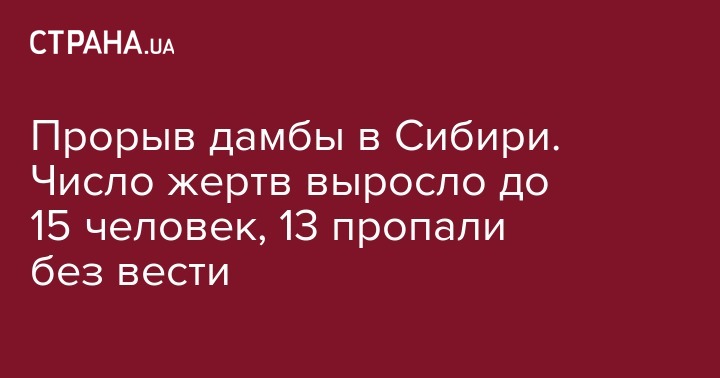 По последним данным, число погибших при прорыве дамбы в Красноярском крае возросло до пятнадцати человек.