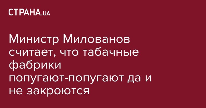 Министр развития экономики, торговли и сельского хозяйства Тимофей Милованов заявил, что после изменений в законодательстве табачные компании шантажируют украинское правительство. Он сказал это, отвечая в Facebook на комментарий одного из пользователей.