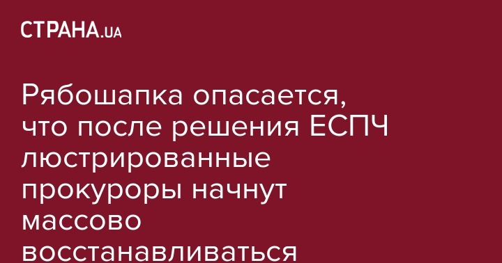 Генеральный прокурор Украины Руслан Рябошапка отмечает, что значительная часть прокуроров, которые были уволены согласно закону об очищении власти (люстрации), может восстановиться в должностях после решения Европейского суда по правам человека, который 17 октября по жалобе пяти украинских экс-чиновников признал, что увольнение их на основании данного закона нарушило права этих граждан.
