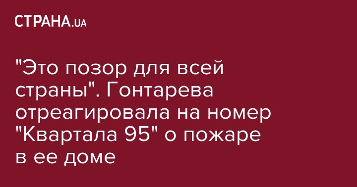 Напомним, что песня о пожаре в доме Гонтаревой была исполнена на сцене "Квартала 95" Евгением Кошевым при участии хора имени Веревки. Номер был показан накануне 55-летия Гонтаревой, которое она отметила 20 октября. В частности прозвучали такие строки: "Горел дом, пылал, в Лондоне женщина плакала...", "Дом горит в Гореничах, а в Лондоне Валерия думает на Валерьича (Игоря Коломойского - Ред.)", "Мораль проста - дом сгорел со стыда...", "Люди огонь увидели - помогать начали, ведра схватили и прибежали, в огонь соляру хлюпали...".