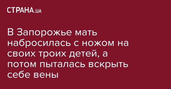 В Запорожье мать набросилась с ножом на своих троих детей, а потом пыталась вскрыть себе вены