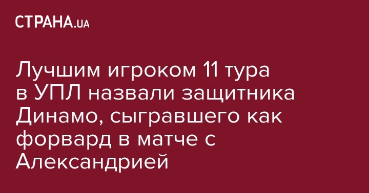 Лучшим игроком 11 тура в УПЛ назвали защитника Динамо, сыгравшего как форвард в матче с Александрией