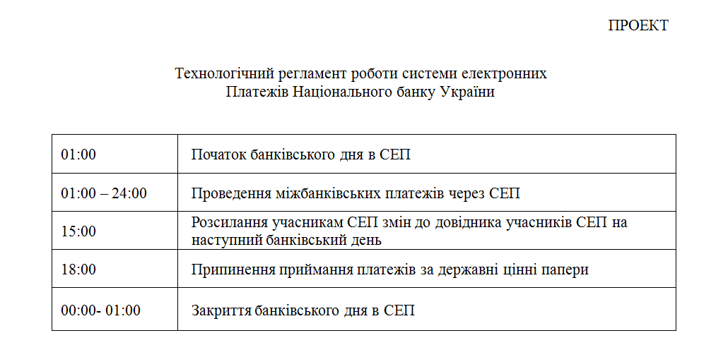 В конце прошлой неделе Нацбанк разослал подопечным и в Госказначейство проект нового технического регламента (письмо №57-0007/54234), по которому СЭП будет работать почти круглосуточно - 23 часа. С часа ночи до 24:00. Перерыв в работе продлится лишь один час - с 00:00 до 01:00.