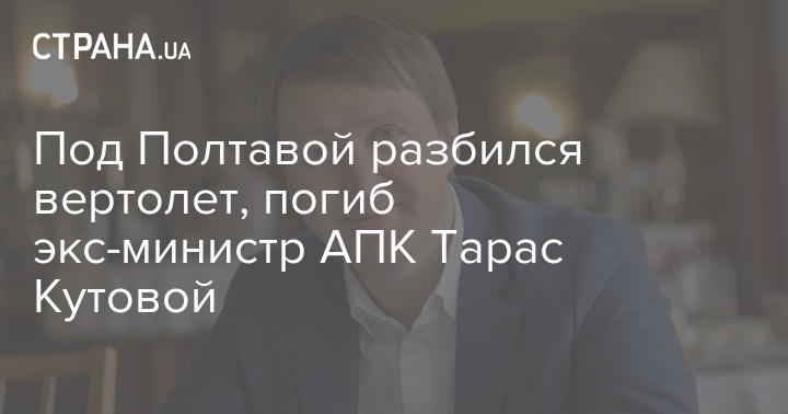 Как стало известно "Стране", за штурвалом вертолета был бывший министр АПК Тарас Кутовой. Именно он и оказался погибшим. Вертолёт, который он арендовал в Киеве упал под Полтавой. Причина неполадки неизвестна. Он этот вертолёт и пилотировал.