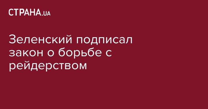 Президент Владимир Зеленский подписал закон №1056-1 о борьбе с рейдерством. Соответствующие данные опубликованы на сайте Верховной Рады в понедельник, 21 октября.