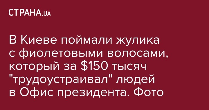 В Киеве поймали жулика с фиолетовыми волосами, который за $150 тысяч "трудоустраивал" людей в Офис президента. Фото