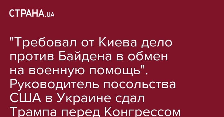 "Требовал от Киева дело против Байдена в обмен на военную помощь". Руководитель посольства США в Украине сдал Трампа перед Конгрессом