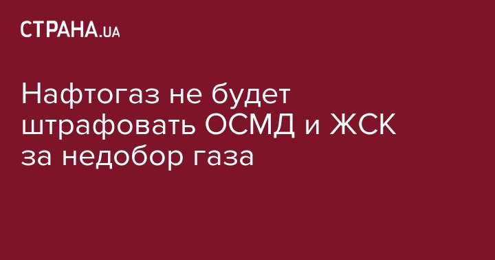 Нафтогаз не будет штрафовать ОСМД и ЖСК за недобор газа