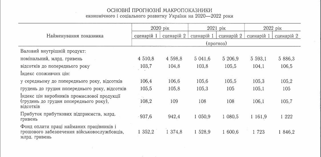 Кабинет министров планирует утвердить на заседании прогноз, согласно которому рост реального ВВП в 2020 ожидается на уровне 3,7%. Именно этот Сценарий 1 будет заложен в проект госбюджета на 2020 год.