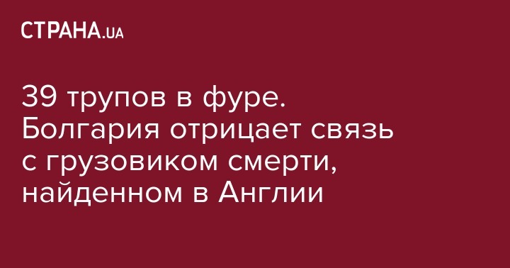 Власти Болгарии отрицают какую-либо связь своей страны с обнаруженным в Великобритании грузовиком, в котором нашли 39 трупов. Эта машина не заезжала в Болгарию (откуда, как сперва сообщалось, она якобы прибыла на остров - Ред.) с 2017 года.