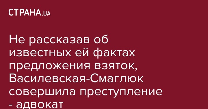 Если народный депутат Украины Ольга Василевская-Смаглюк знала о предложениях взяток и скрыла это от правоохранительных органов, то это можно квалифицировать как уголовное преступление. Такой комментарий дал "Стране" киевский адвокат Иван Войтович по поводу результатов тестирования Василевской-Смаглюк на полиграфе.