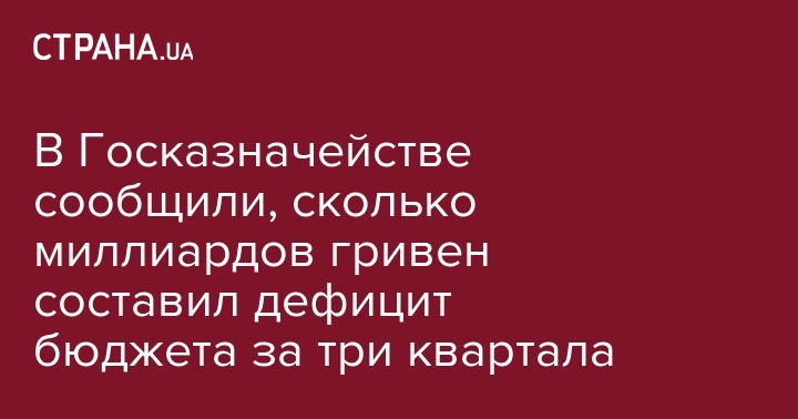 В Госказначействе сообщили, сколько миллиардов гривен составил дефицит бюджета за три квартала