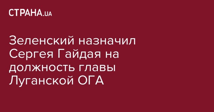 Владимир Зеленский - президент Украины назначил на должность главы Луганской областной государственной администрации Сергея Гайдая. Об этом говорится в указе №767/2019 от 25 октября, обнародованном в субботу.
