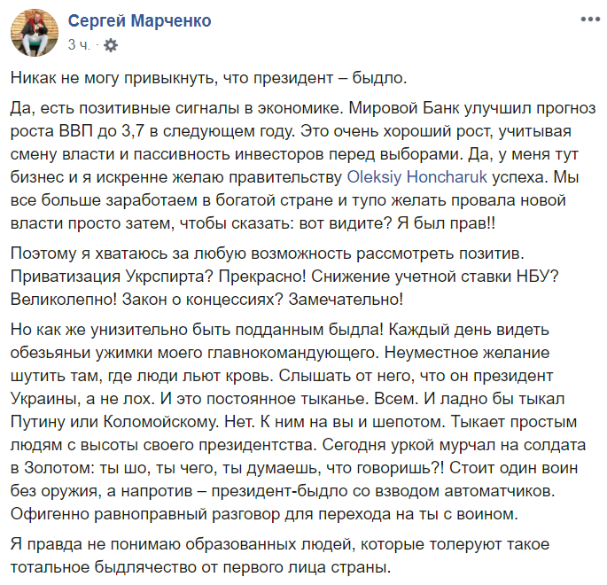 "Никак не могу привыкнуть, что президент – быдло. ...