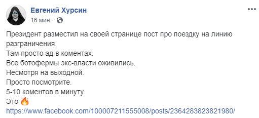 "По встрече президента в Золотом. Видно что встречу для показухи никто не готовил, никто никому заранее не рассказывал, о чем можно говорить и какие вопросы задавать. Тут спорили, не соглашались и даже кричали. Такого простого и открытого общения с солдатами во времена Порошенко с его тёплыми ваннами, подготовленной массовкой и карманными журналистами - даже представить себе было нельзя. Говорили по простому. По человечески. Слушали и слышали друг друга. Основная суть- люди хотят разведения, устали от войны. Большинство украинцев этого хотят, везде.И тут в Золотом. Те кто пытаются сорвать договоренности , играя в политические игры, так называемые "некапитулянты" просто продвигают интересы одного человека и его партии, все понимают кого именно. У государства и ее армии должно оставаться право на поддержание закона , так должно быть.И так будет.